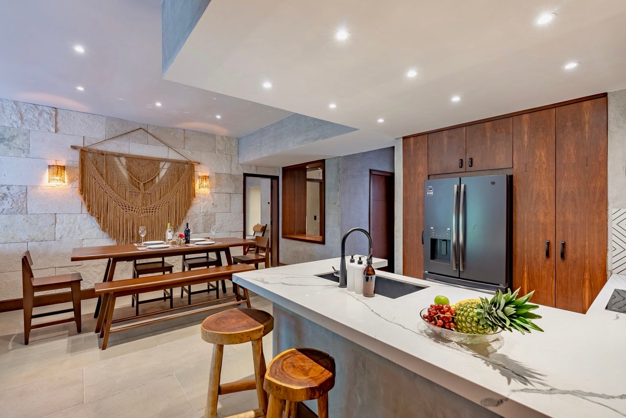 Experience the ultimate in beachfront living with this fully remodeled, spacious 3-bedroom, 3-bath penthouse, located directly at Playa del Carmen’s famous Mamitas Beach. Completely renovated in 2023 by a professional designer, every space reflects a perfect blend of contemporary comfort and modern Mexican style.