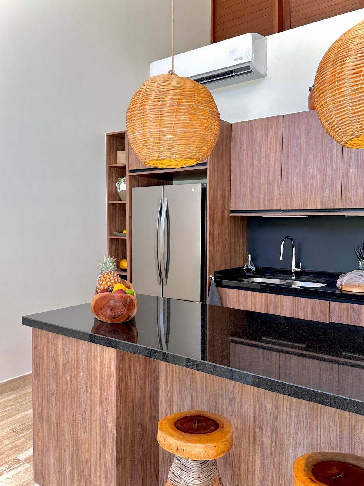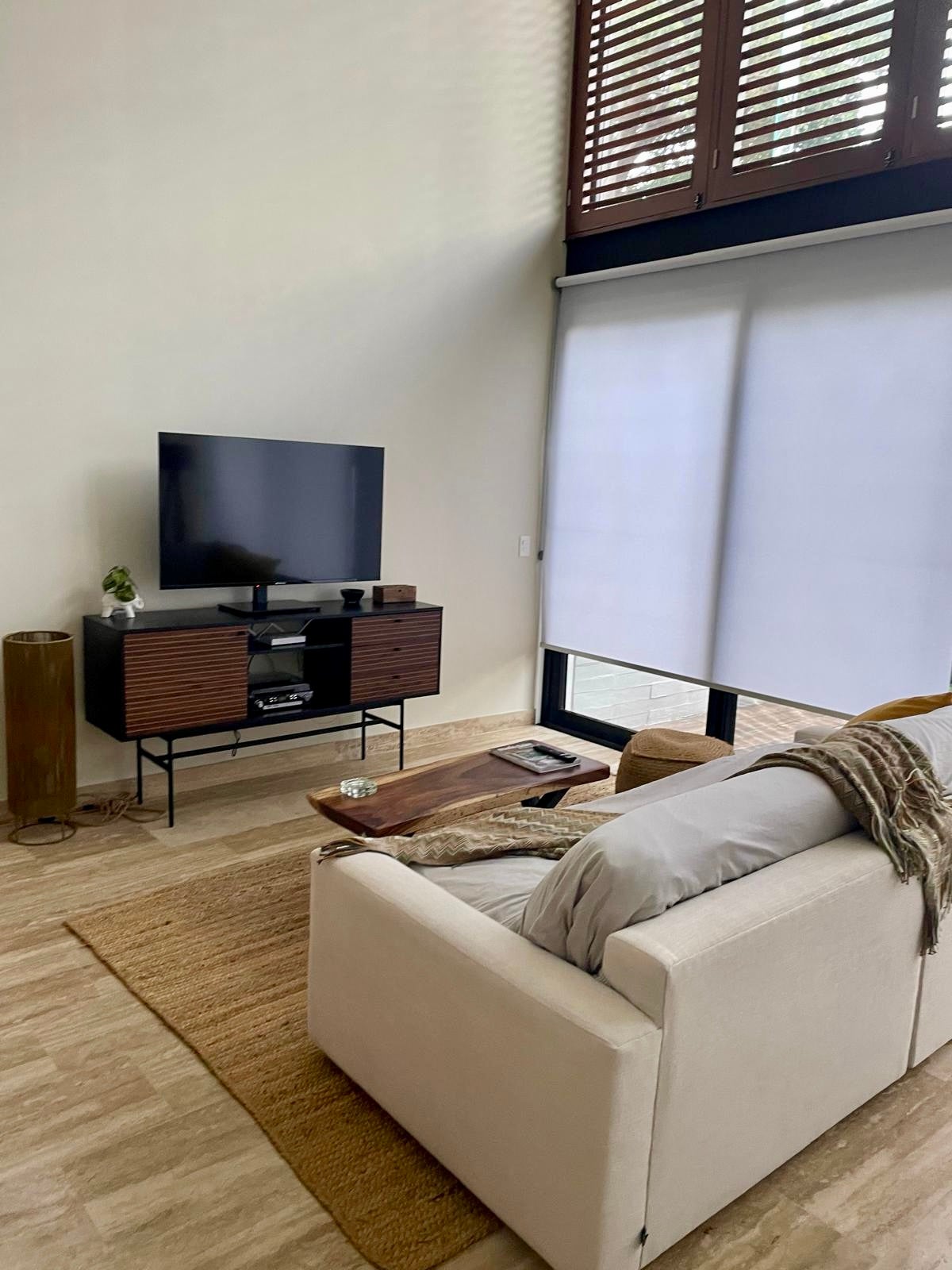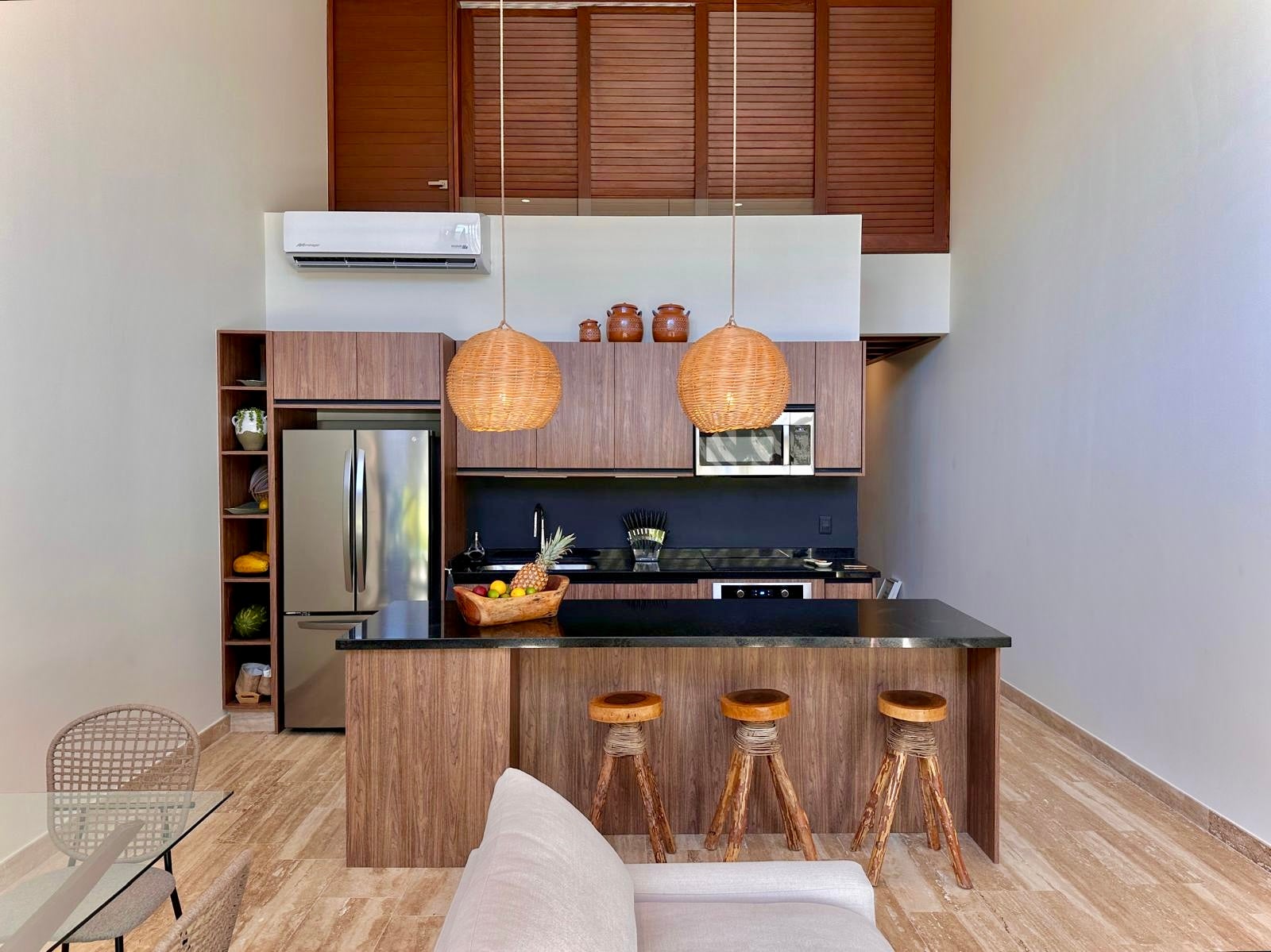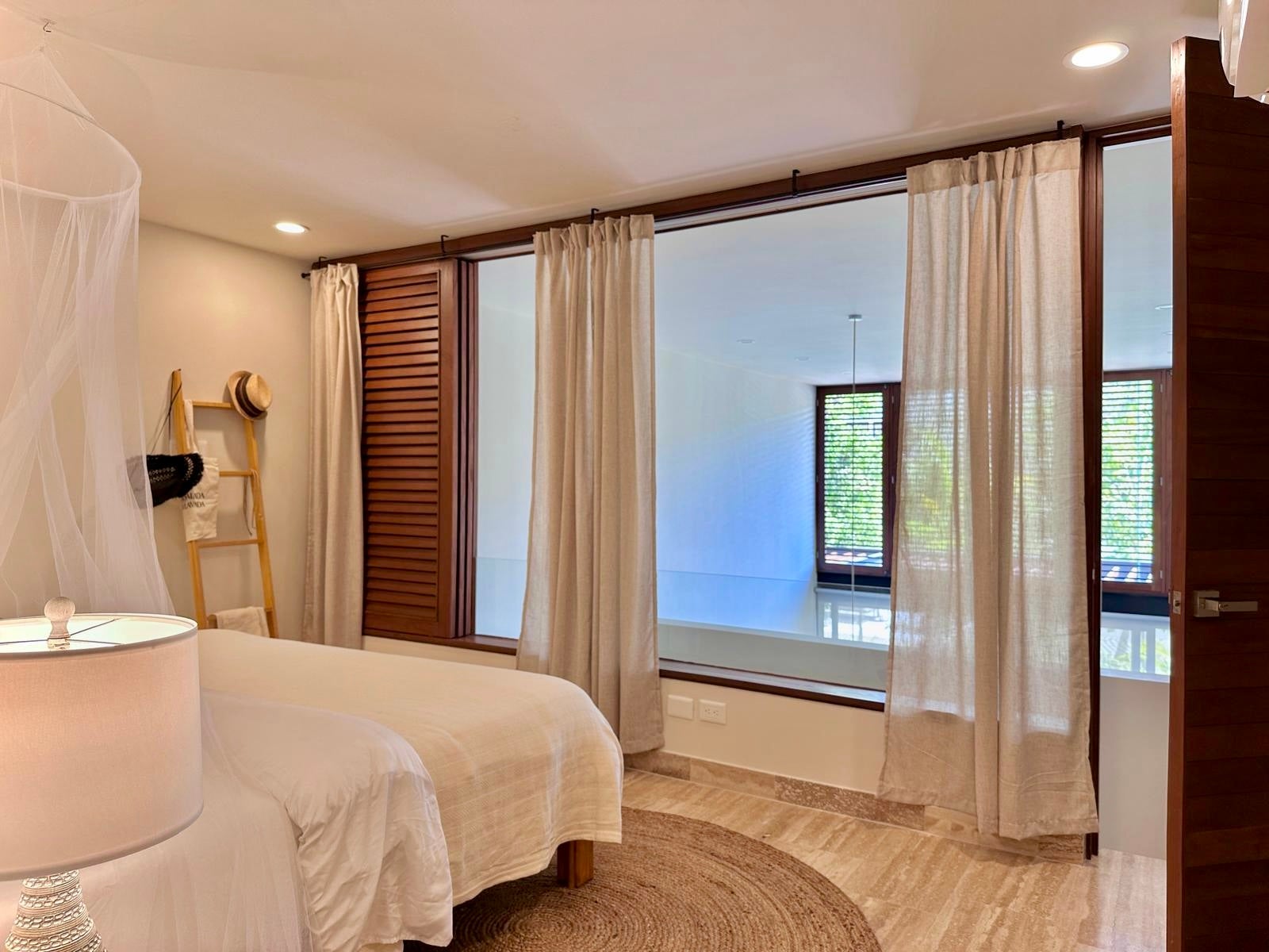 Live the tropical lifestyle in this beautifully furnished 2-bedroom, 2.5-bathroom loft condo located in the exclusive AWA Playacar community. This bright and airy ground-floor unit features a modern open-plan layout, double-height ceilings, and a spacious terrace with peaceful jungle views.With over 119 m² of living space, the condo includes a sleek kitchen with island, cozy living area, and a loft-style master bedroom that adds a unique touch. High-quality finishes and stylish decor make this home move-in ready.