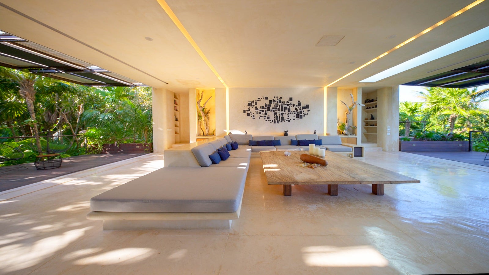 Rare oceanfront estate located within the Sian Ka’an Biosphere Reserve, approximately 30 minutes south of Tulum’s Hotel Zone. Set on 26,000 m² (5 acres) with 100 meters (300 ft) of direct Caribbean beachfront, this property offers exceptional privacy in a protected, low-density natural reserve.The residence includes 800 m² (8,600 sq ft) of construction designed for natural ventilation and seamless indoor-outdoor living.