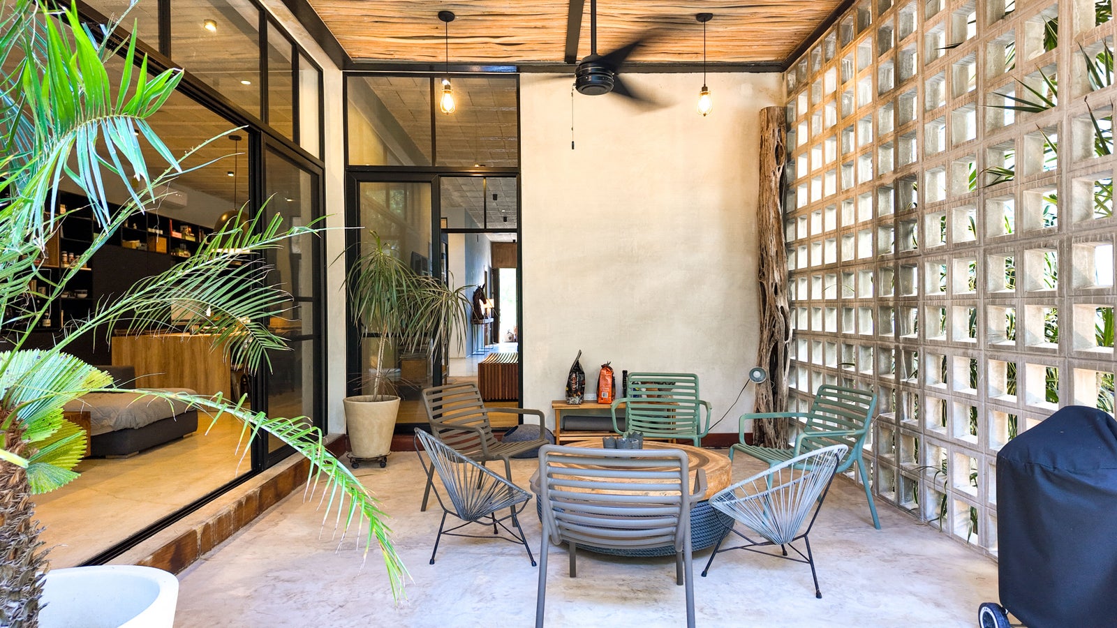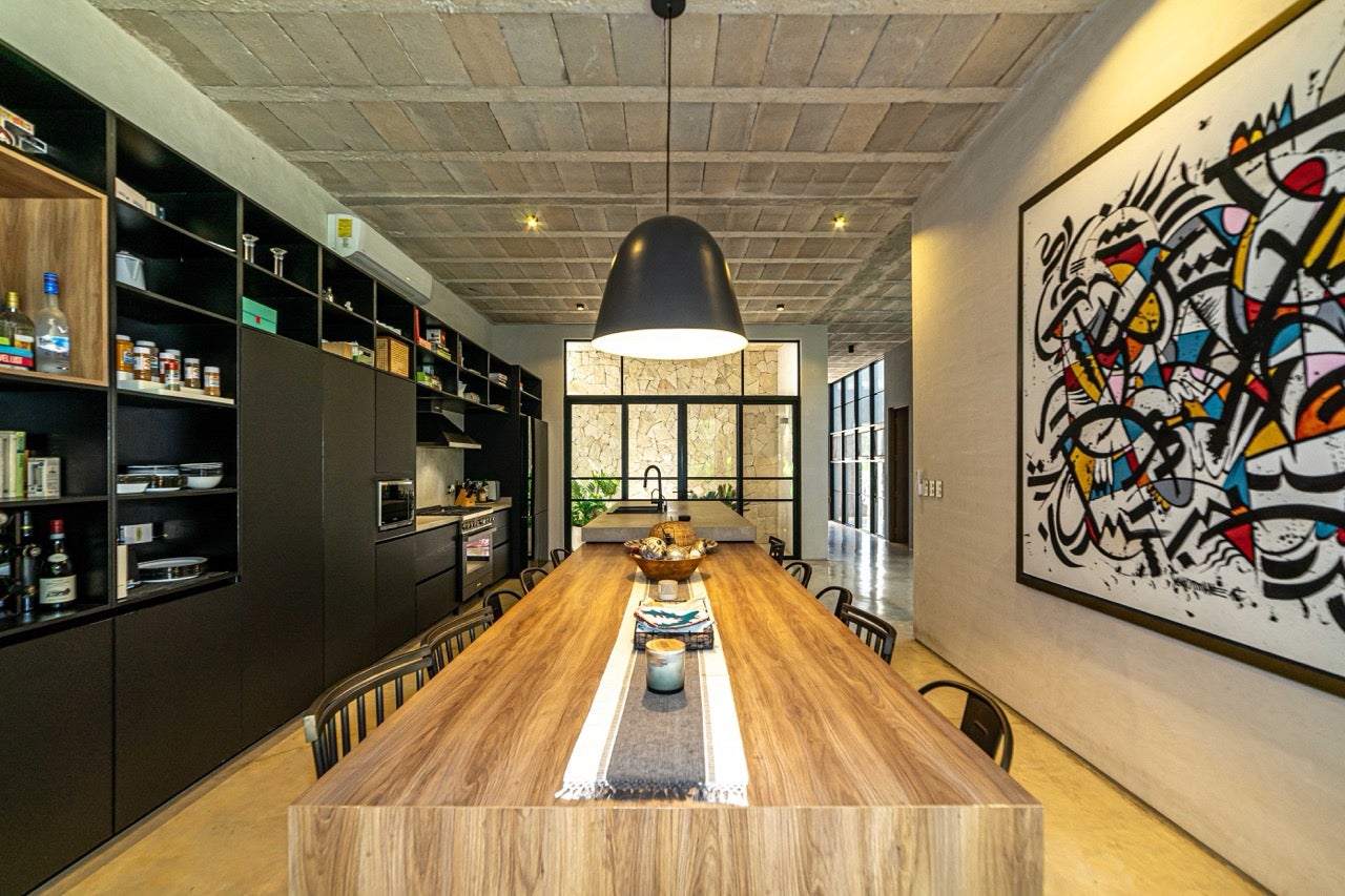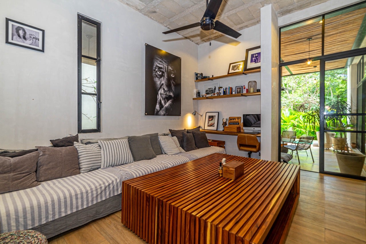 Modern Bohemian–industrial interior design, Prestigious gated community in Playa del Carmen, Surrounded by tropical nature and green spaces, Peaceful residential environment, Walking distance to the beach, Sustainable and family-friendly community