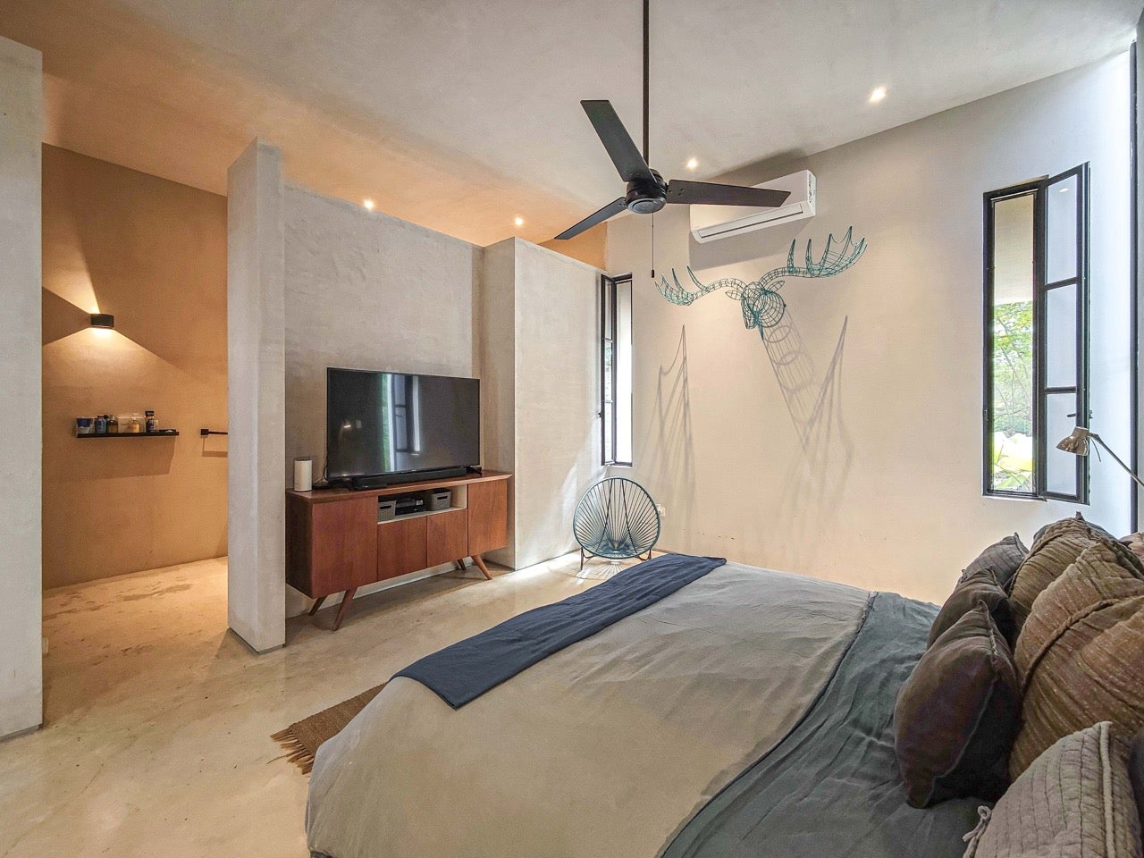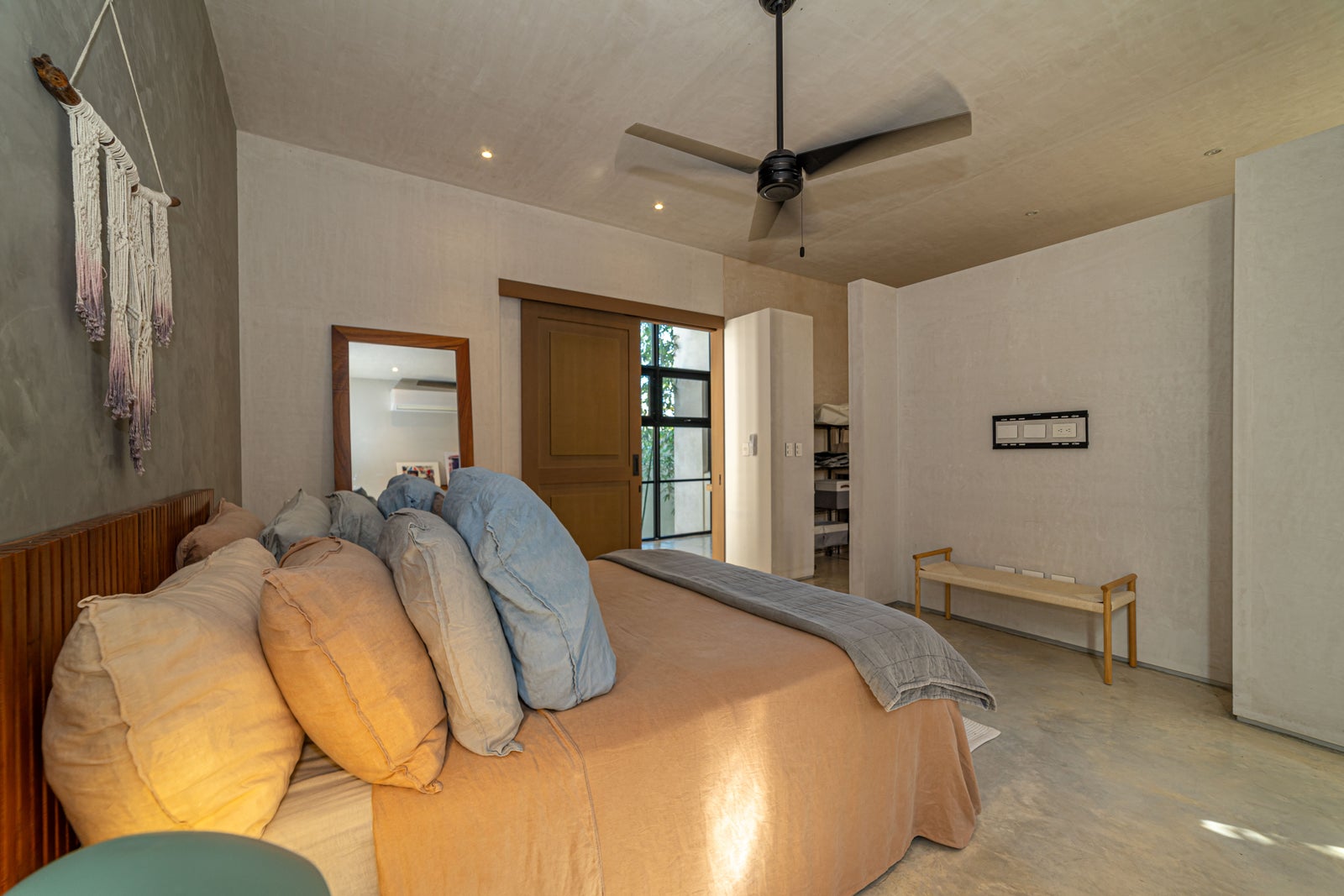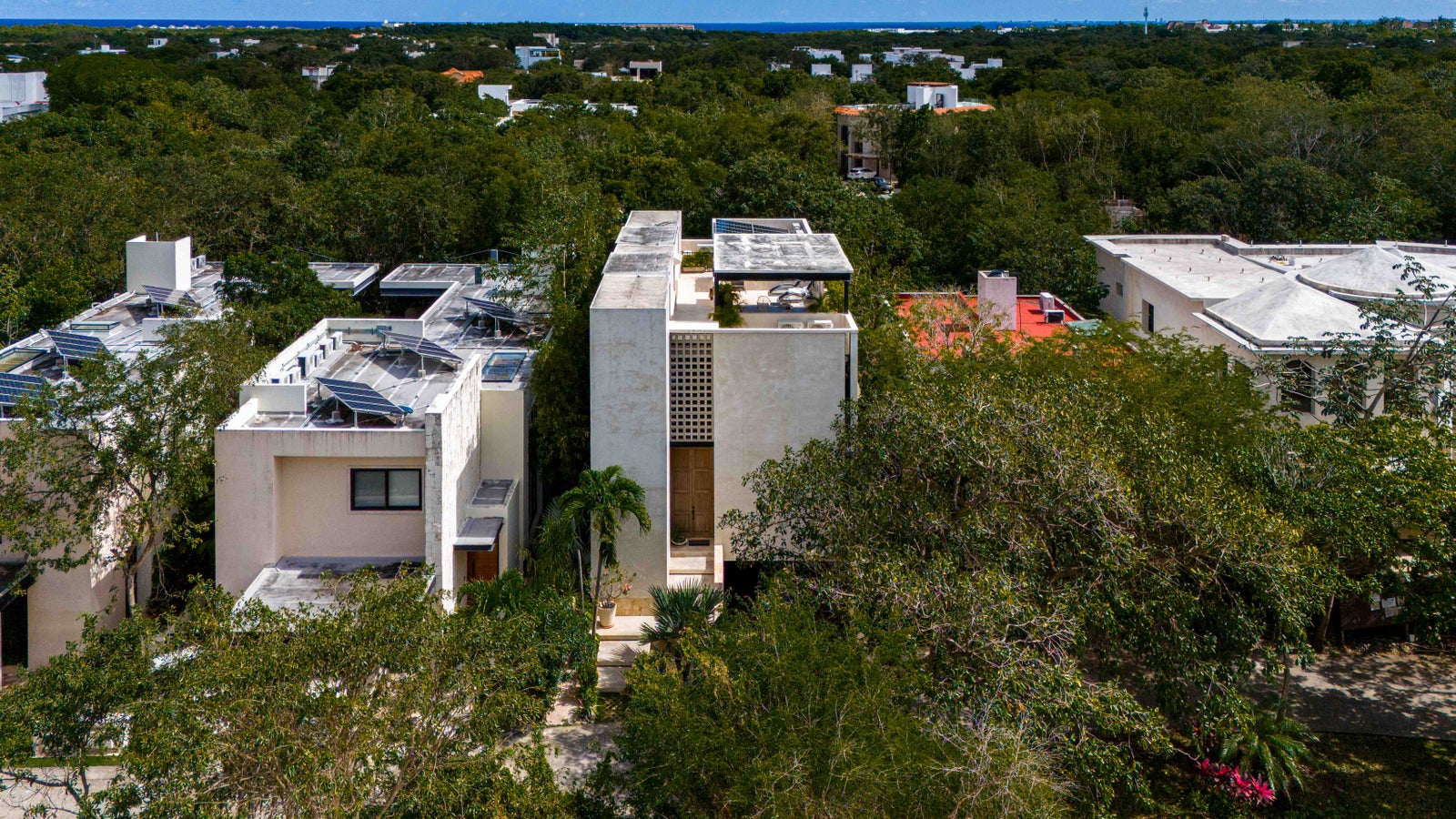 Modern Bohemian–industrial interior design, Prestigious gated community in Playa del Carmen, Surrounded by tropical nature and green spaces, Peaceful residential environment, Walking distance to the beach, Sustainable and family-friendly community