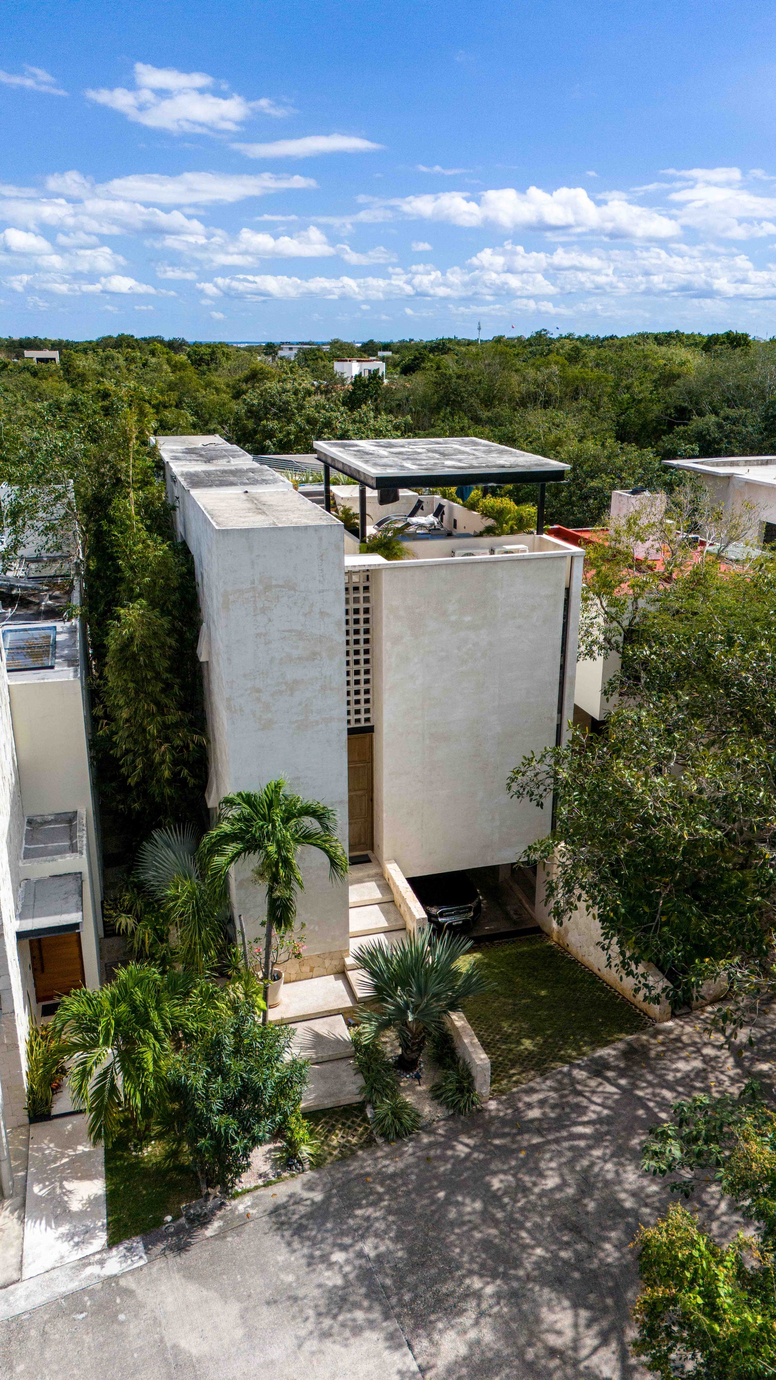 Private swimming pool with terrace, Rooftop terrace with jacuzzi, lounge & BBQ area, Open kitchen with island, High ceilings and natural airflow, Master suite with 2 walk-in closets and private terrace, Library and TV / family room, Office, Semi-basement with staff studio, laundry & machine room Storage areas Underground parking (up to 2 cars) Solar panels and LED lighting Premium finishes: Mayan stone, travertine marble, microcement, solid wood carpentry Located in a secure gated community near the beach