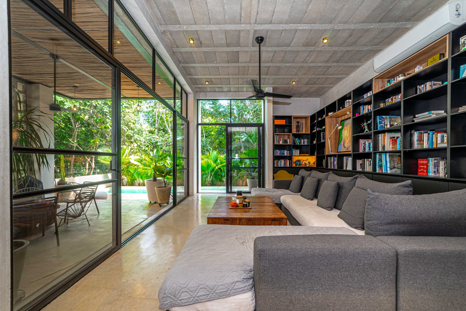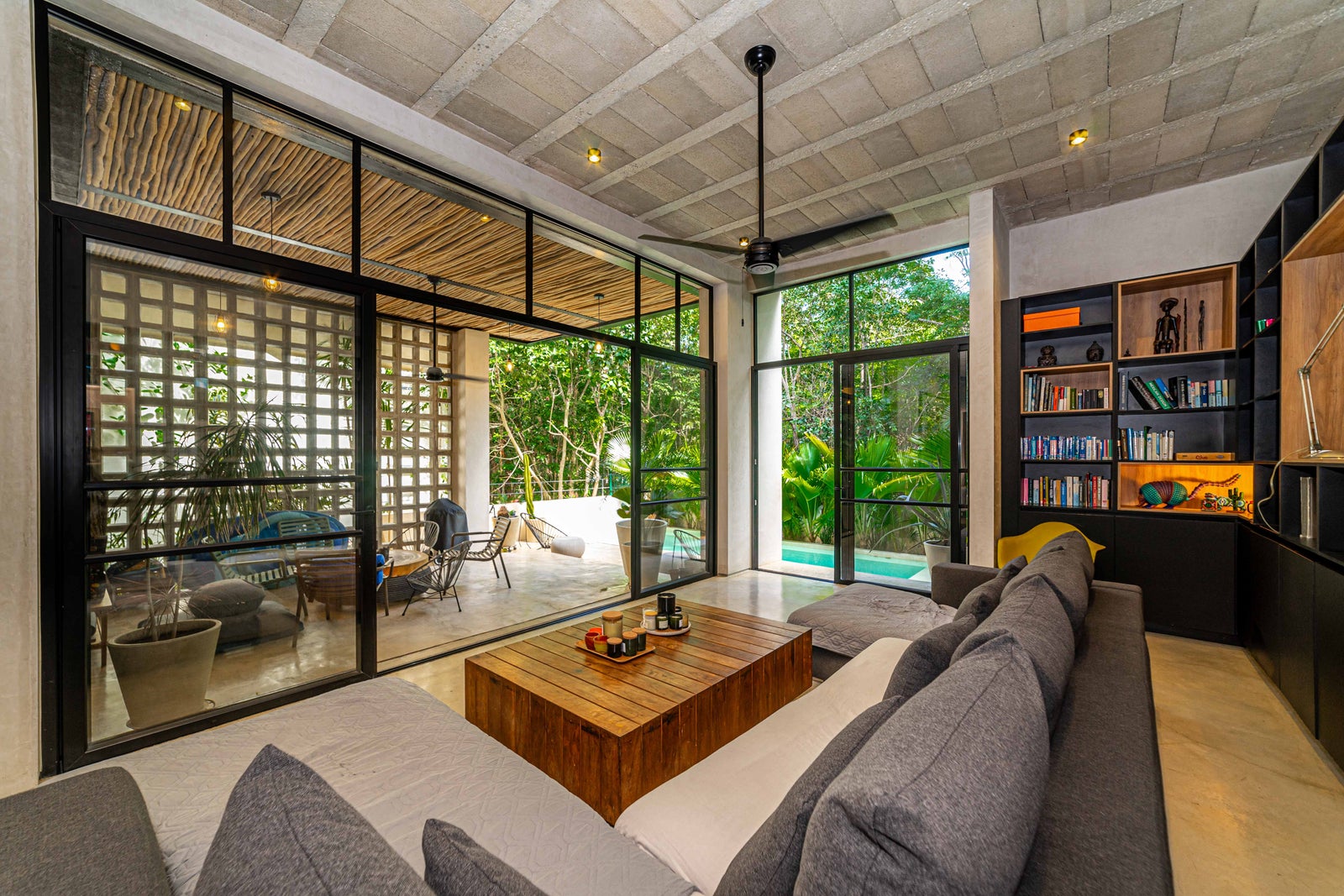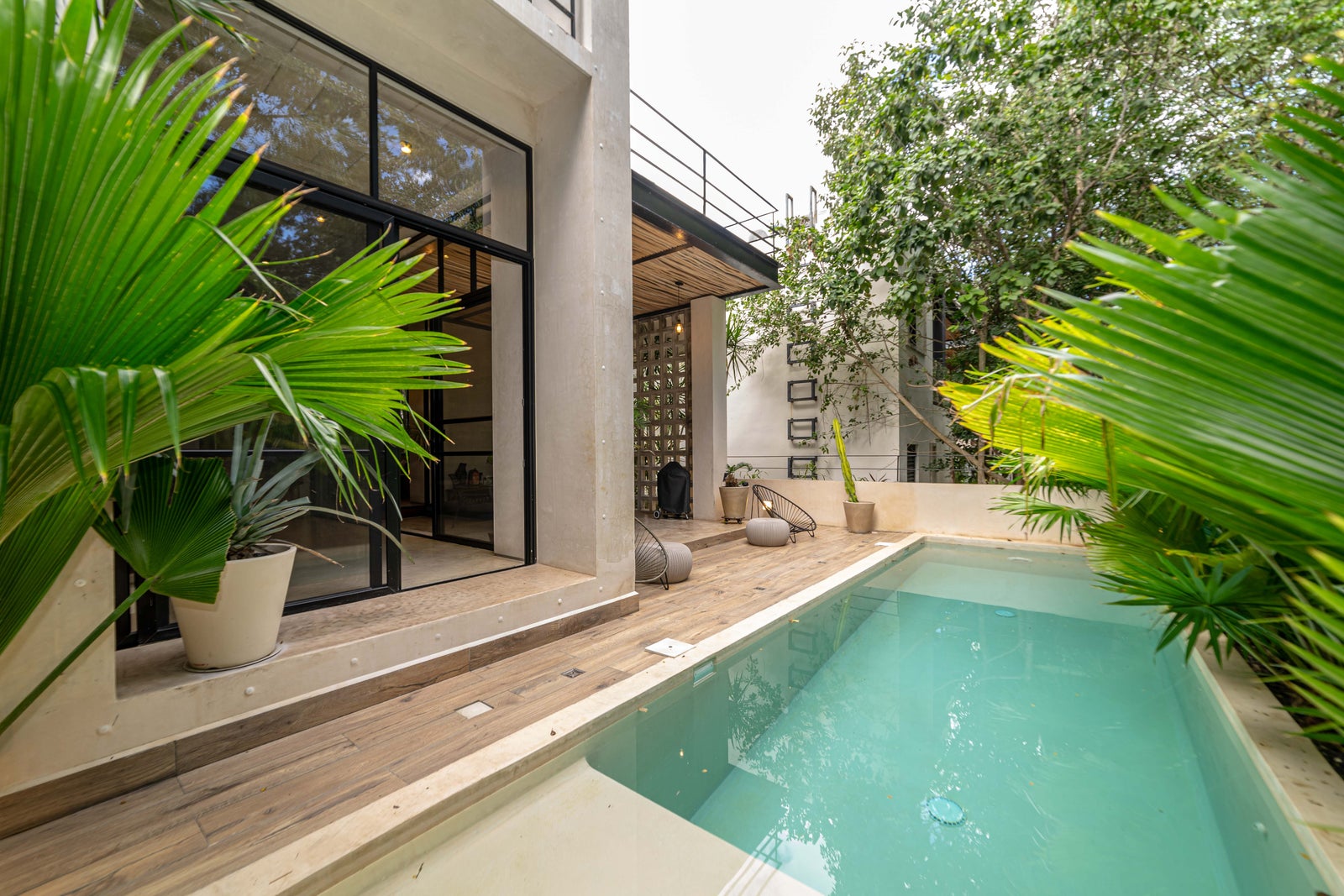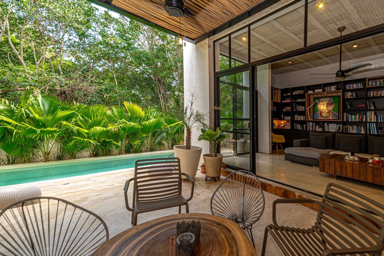 Luxury 4-bedroom villa with studio in Selvamar, Playa del Carmen. Features private pool, rooftop with jacuzzi, underground parking, high ceilings, and bohemian-industrial design in a secure gated community near the beach.Located inside the peaceful and green gated community of Selvamar, this beautiful luxury villa combines bohemian charm with modern industrial design. The home was designed with open spaces, natural airflow, and high ceilings, creating a comfortable and relaxed atmosphere only minutes from the beach.
